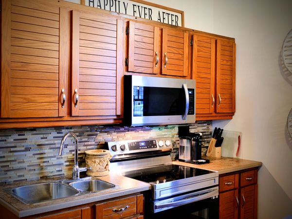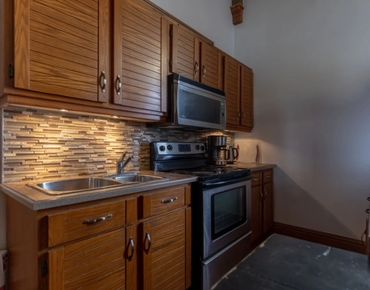 Enjoy the convenience of a fully equipped kitchen featuring brand-new appliances, including a fridge, stove, oven, microwave, coffee maker, and kettle. For added comfort, we provide a countertop water filter and cooler with fresh drinking water—perfect for extended stays or cozy nights in.